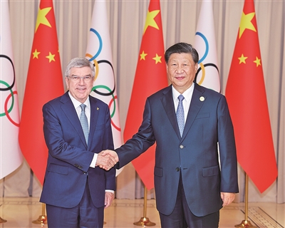 习近平强调,中国一贯重视发展体育事业,积极参与国际奥林匹克事务,践行“更快、更高、更强——更团结”的奥林匹克格言。去年中国克服新冠疫情等挑战,向世界奉献了一届“简约、安全、精彩”的北京冬奥会,北京成为全球首个“双奥之城”。中国传播奥林匹克精神的脚步永不停歇,愿同国际奥委会一道,坚持体育非政治化原则,充分利用北京冬奥会遗产,为推进奥林匹克事业和构建人类命运共同体作出新的更大贡献。目前,杭州亚运会的准备工作已经就绪。中国政府和中国人民完全有信心呈现一届“中国特色、亚洲风采、精彩纷呈”的体育盛会,为推动奥林匹克运动发展、促进亚洲人民团结和友谊作出新的贡献。