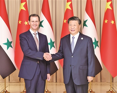 巴沙尔表示,中国通过自身奋斗,走出了一条成功的中国特色社会主义道路。中国在国际事务中始终站在国际公平正义一方,站在国际法和国际人道主义一方,发挥着重要建设性作用。习近平主席提出的共建“一带一路”倡议、全球发展倡议、全球安全倡议、全球文明倡议,目的都是通过合作帮助所有人实现安全和发展,共享和平繁荣的未来,叙方高度赞赏、坚定支持,并将积极参与。叙方衷心祝贺中国取得的伟大成就,感谢中国政府给予叙利亚人民的宝贵支持,坚决反对任何干涉中国内政的行为,愿做中国长期坚定的朋友和伙伴。叙方愿以建立叙中战略伙伴关系为契机,加强双边友好合作,密切在国际和地区事务中的沟通协调。
