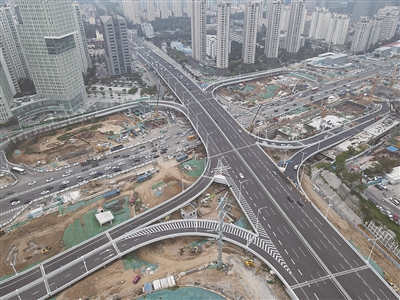 目前银川路主桥及东北象限(靠近大荣中心)、东南象限(靠近恩马文景园)、西北象限(靠近国信体育场)三个区域全部施工均已完成内容:地下空间主体结构全部完成,顺利实现主桥及上方匝道桥通车。靠近青大附院崂山院区的西南象限正在加紧施工,全力冲刺,目前该区域主体结构完成75%,上方匝道桥建设同步推进。