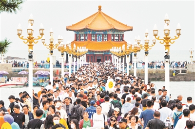“青岛国际啤酒节享有盛名,我本来遗憾没能赶上,没想到啤酒博物馆里专门设置了打卡场景。”在青岛啤酒博物馆升级亮相的中途酒吧,河北游客于女士正和朋友品饮新鲜的青岛啤酒。这个假期是青岛啤酒博物馆业态焕新升级后迎来的首个“黄金周”,在一系列文化、科技元素的加持下,博物馆里的体验更为有趣。比如,游客在经过现代化包装生产线参观区域时,可以点击玻璃上的触摸屏参与互动。《觉醒的酿造师》剧游、《金色奇妙夜》夜游等沉浸式旅游产品则是年轻人的“心头好”。此外,融合非遗文化、青岛人文等元素的折扇、帆布包、冰箱贴等文创产品,销售火爆。