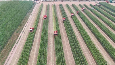 金秋时节,在位于平度市蓼兰镇的市级绿色增粮先行示范区种植基地内,玉米穗大粒满、金黄璀璨,伴随马达轰鸣,穗茎兼收玉米收获机、自走式青贮饲料收获机等农业机械来回穿梭,割倒、摘穗、装仓、秸秆还田、宽幅精播、播后镇压等多项作业压茬推进,实现了农机、农艺和信息技术的融合。