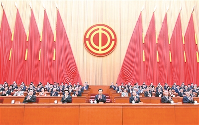 人民大会堂大礼堂气氛热烈。主席台上方悬挂着“中国工会第十八次全国代表大会”的会标,后幕正中象征着中国工会和中国工人阶级团结统一的工会会徽熠熠生辉,10面红旗分列两侧。二楼眺台悬挂着“坚持以习近平新时代中国特色社会主义思想为指导,全面贯彻党的二十大精神,组织动员亿万职工为全面建设社会主义现代化国家、全面推进中华民族伟大复兴团结奋斗!”的巨型横幅。