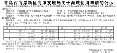 青岛西海岸新区海洋发展局关于海域使用申请的公示