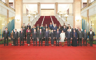 出席高峰论坛的外国国家元首、政府首脑、国际组织负责人等国际贵宾及配偶陆续抵达人民大会堂。礼兵列队致敬。150多面共建“一带一路”国家国旗和联合国旗,整齐分列红毯两侧,恢宏壮观。