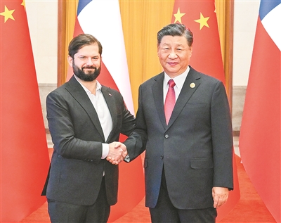 博里奇表示,我非常荣幸来华出席第三届“一带一路”国际合作高峰论坛并进行国事访问。智利在拉中关系发展中创造了很多第一,智方深感骄傲。智方高度欣赏中华文明,敬佩并祝贺中国在减贫、反腐等方面取得的伟大成就,感谢中国在智利面临新冠疫情等困难时提供无私帮助。智方始终坚定恪守一个中国原则,将继续在各种场合给予中方坚定支持。习近平主席提出的共建“一带一路”倡议,源自中国5000多年传统文化,基于平等和相互尊重原则,已经成为世界各国开展互利合作的重要平台和实现共同发展的重要机遇,智方高度评价并将继续积极参与。智方着眼长远思考和谋划同中国的关系发展,希望以此访为契机,加强环保、减贫、能源、科技、矿业等领域合作,深化人文交流,欢迎中国企业赴智开展投资合作,推动智中关系继往开来,进入更高水平发展的新阶段。智方支持中国加入《全面与进步跨太平洋伙伴关系协定》和《数字经济伙伴关系协定》,高度评价中方奉行和平的外交政策,愿同中方密切在亚太经合组织等多边框架内沟通协作,推动全球南方国家加强团结合作,构建人类命运共同体。智利希望成为中国同拉美国家合作的枢纽,为促进拉中关系发展发挥积极作用。