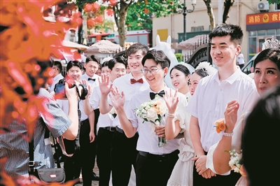 “海誓山盟”婚恋IP则是市南区持续推动“婚恋+文旅”产业深度融合的集中体现。这项文旅品牌以海誓山盟广场为主体,结合婚恋文化体验,重点引入沉浸演艺、艺术展览等特色体验业态,联动安娜别墅婚礼艺术中心,打造最具浪漫色彩和异域风情的婚恋文化地标,把婚庆旅游做成一个整体的服务体系、一条完整的产业链。