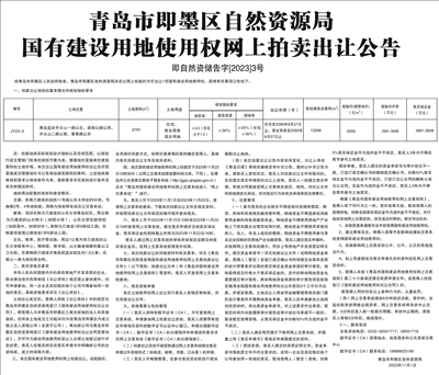 青岛市即墨区自然资源局国有建设用地使用权网上拍卖出让公告