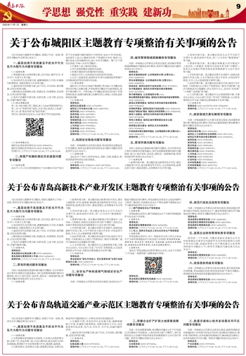 关于公布青岛轨道交通产业示范区主题教育专项整治有关事项的公告