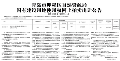 青岛市即墨区自然资源局国有建设用地使用权网上拍卖出让公告