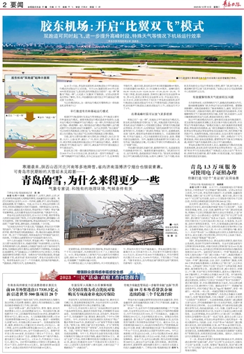 本报12月11日讯 寒潮侵袭下,这两天,陕西、山西、河北、河南等多地出现大风降温和降雪,局地暴雪甚至大暴雪。再把目光转到山东省内,11日一早济南、淄博、济宁、烟台等地都已是银装素裹,雪下得挺大。可是,12月11日,青岛全市普降小到中雨,市民热切期望的大雪却不见踪影。同样都是在山东半岛,为什么烟台、威海总是大雪连连,青岛却很少下雪呢?青岛气象专家解释说,这其实跟青岛独有的地理环境、气候条件有关。