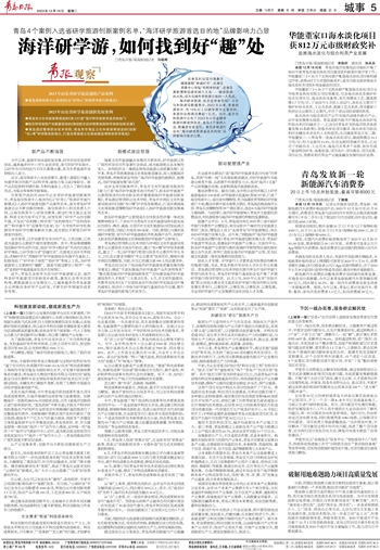 随着文化和旅游融合发展的不断深化,研学旅游以其广阔的市场空间和显著社会效益,成为旅游新业态发展的宠儿。如何抢抓这一蓬勃态势推动旅游业高质量发展?近年来,青岛市围绕黄渤海文化体验廊道建设,深入挖掘海洋优势资源,积极探索宣传推广海洋研学旅游的新路径、新模式,为研学旅游发展“添后劲”。