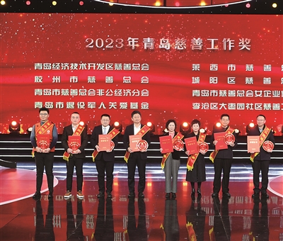 经过组织评选,海尔集团公司等10家单位获得“2023年青岛慈善十佳”荣誉称号;黄岛区“幸福来敲门”关爱项目等11个项目获得“2023年青岛慈善创新奖”;青岛经济技术开发区慈善总会等17家单位(个人)获得“2023年青岛慈善工作奖”;青岛华商投资集团有限公司等21个团队(个人)获得“青岛慈善爱心奖”。