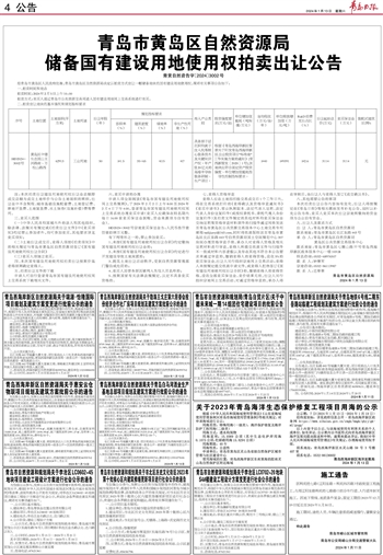 | 青岛市黄岛区自然资源局储备国有建设用地使用权拍卖出让公告 | |