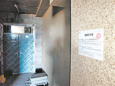 记者在现场看到,该地下室位于居民楼2号楼和5号楼之间的网点下方,在青山路一侧有一个出入口。记者沿着一条不足两米宽的坡道来到负一层发现,网点大门紧闭,墙上张贴的装修许可证显示,装修内容为“农贸市场”,装修时间为“2023.12.21-2024.3.31”。虽然地下室里亮着灯,但记者敲门时无人应答。