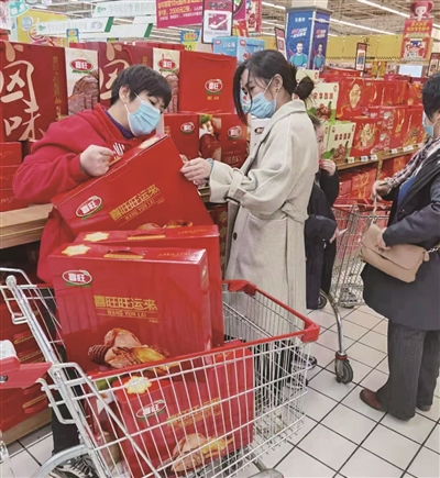 当下,国潮兴起,礼品更注重祝福功能。郑先生说:“咱中国人过年,要有年味,现在生活好,什么都不缺,礼品就是一种祝福。”“年夜饭必有喜旺,兆头好啊!”为员工选福利的卓女士说:“我们厂每年都发喜旺,单位喜喜旺旺、蒸蒸日上,员工喜喜旺旺,天天向上。”