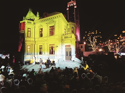 音乐人赵晓凯打造的实景音乐剧《爱情绽放》,在老城区的浙江路26号安娜别墅露天庭院首演,吸引了众多市民游客观看。赵晓凯设想,将一连串的街景做成串联式的表演,“就像电影中的一镜到底,让观众沉浸到故事中来,跟着演员从这座楼到那座楼,带来开放性沉浸式的独特体验,打造具有青岛特色的音乐剧实景IP”。