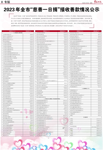 2023年全市“慈善一日捐”接收善款情况公示