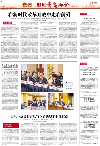 工业制造业提质增效,是青岛经济高质量发展的关键支撑。政府工作报告提出,大力推进新型工业化,争创国家新型工业化示范区。如何结合青岛产业基础,走出一条具有青岛特色的新型工业化道路?分组审议中,代表们纷纷建言献策。