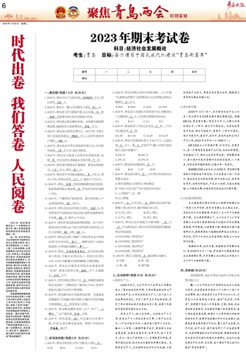 本报编辑部根据赵豪志市长在青岛市第十七届人民代表大会第三次会议上所作的《政府工作报告》,准备了这份“试卷”。试图以这种方式,呈现城市在发展进程中昂扬向上的姿态。通过试卷作答,读者可以更好地了解青岛经济社会发展的新蓝图、新思路,以新视角读懂当下青岛的激昂奋斗之心,进一步凝聚共识、坚定信心,埋头苦干、勇毅前行,奋力谱写中国式现代化建设“青岛新篇章”。