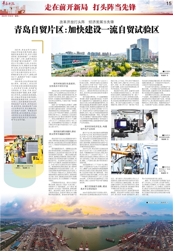 2024年是山东自贸试验区获批5周年。新征程上,青岛自贸片区将在全面总结建设经验基础上,牢记青岛“打头阵、当先锋”的光荣使命,以“忠诚、干净、担当”的政治品格和“激情、效率、质量”的工作作风,认真落实各级部署,深入实施自贸试验区提升战略,聚焦高效能制度创新,全年创出30项以上高质量制度创新成果。聚焦高端产业培育,发挥集成电路、基因科技、智能制造等产业链主企业带动作用,突出强链补链,壮大高端产业集群。聚焦高品质营商环境,优化流程再造,打造企业和项目全生命周期服务体系,为谱写中国式现代化“青岛新篇章”作出自贸贡献。