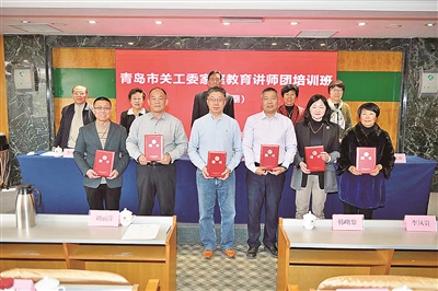 ■1月8日至9日,青岛市关工委举办关工委家庭教育讲师团(第二期)培训班,并向讲师团成员颁发聘书。此次培训采用专题讲座、分组交流研讨、教学观摩相结合的教学方式,结合家庭教育宣讲的实际需求,组织邀请市内外领导和专家,围绕重点课题系统培训和现场指导。市关工委家庭教育指导团成员和各区市关工委有关负责同志参加培训。