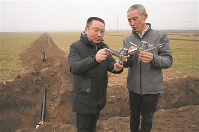 临近春节,这本是乡村农耕生活一年到头来最清闲的日子,但田间的静谧却被一个忙碌的身影“抢占镜头”——只见他在田地间来回穿梭,一会蹲下查看铺设的管道,一会研究起手中的水泵,脚上一双运动鞋尽是泥泞。