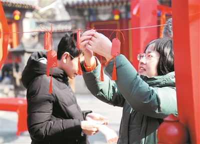 正月里,一些文化情感被倏然唤醒。天后宫的新正民俗文化庙会吸引着全家老少一起出动,非遗手工体验、传统民间游戏、新年祈福等特色活动尽显中华优秀传统文化的深厚底蕴与无穷魅力;即墨古城内一盏盏红灯笼高高挂起,游人或是鸣钟祈福辞旧迎新,或是从地方戏曲的传唱中感受文化生命体的饱满厚重。