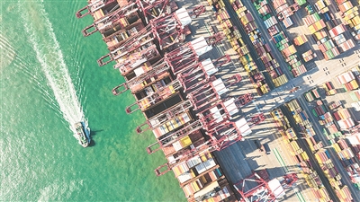 青岛港自身生产方式也在变革。将数字化、氢能、空轨等前沿技术融入港口生产,加快向智慧绿色港口转型。不久前投用的全国首个全国产全自主自动化码头——山东港口青岛港自动化码头(三期),A-TOS、A-ECS系统以及首套全国产自动化电控系统等新技术规模化应用,一举刷新了装卸效率世界纪录。相隔不远的青岛前湾联合集装箱码头,随着最后一批14台进行自动化改造升级的轨道吊完成试运行,场区91台轨道吊自动化全面覆盖,成为传统集装箱码头自动化改造的新标杆。