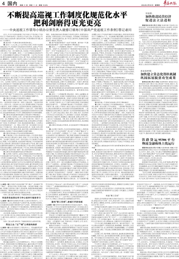 ~~~——中央巡视工作领导小组办公室负责人就修订颁布《中国共产党巡视工作条例》答记者问