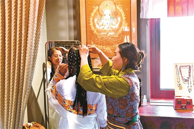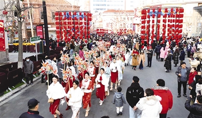 国潮恒久而新颖。2月下旬,青岛迎来多年不见的春雪。在城市更新中活化的历史城区,许多市民与游客特地前来这里打卡难得一见的岛城雪景。无论是具有典型青岛传统民居特色的里院,还是蕴含着青岛历史文化的老街,在洋洋洒洒的雪中被赋予了别样的古典风韵。在大鲍岛的文布嘉措西藏艺术空间院落,红瓦上覆盖着绵厚的白雪,与浓郁而艳丽的藏族服饰相得益彰。一些“藏迷们”在这个“青岛离西藏最近的地方”尽情打卡,国潮风扑面而来。