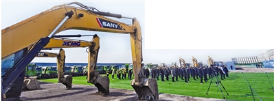 2月26日,即墨区。一汽年产40万件发动机高端部件青岛基地项目现场,几十台挖掘机、推土机、渣土车整齐排列,以“轰隆隆”的引擎轰鸣声,鸣响了青岛重大项目集中开工建设的号角。