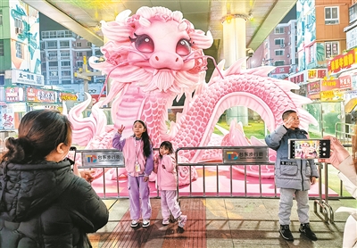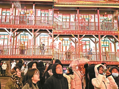 这年味“飘”出新风尚。天后宫非遗民俗体验、汉服体验等活动精彩纷呈,市民游客在参观游览之余,还能动手感受不一样的年味。广兴里上演院落式环幕非遗数字光影实景演出,胶东大鼓、剪纸、皮影戏等非遗元素与环幕数字光影融合,动画、互动、沉浸、大型装置等形式对里院作全新艺术解构,市民游客置身其中回望沧桑百年。