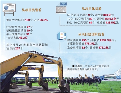 从项目建设阶段看,建设类项目255个,总投资2337.3亿元,年度计划投资778.3亿元;准备类项目62个,总投资876.2亿元。