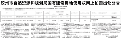 胶州市自然资源和规划局国有建设用地使用权网上拍卖出让公告