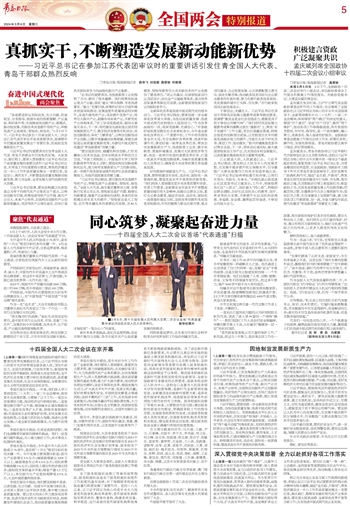 习近平总书记的重要讲话在住青全国人大代表、青岛干部群众中引发热烈反响。大家表示,新征程上,要深入贯彻落实习近平总书记关于高质量发展的重要论述和习近平总书记对山东、对青岛工作的重要指示要求,聚焦经济建设这一中心工作和高质量发展这一首要任务,坚定信心、真抓实干,不断塑造高质量发展新动能新优势,努力为全国、全省发展大局作出新的更大贡献。