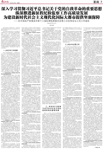 ~~~——在中国共产党青岛市第十三届纪律检查委员会第三次全体会议上的工作报告 (2024年2月4日) 马立新