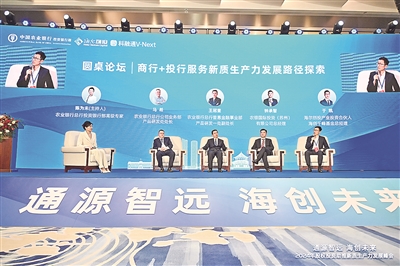 圆桌论坛环节,来自中国农业银行总行公司业务部、普惠金融部、农银国际和海尔创投的与会代表和机构负责人,围绕“‘商行+投行’服务新质生产力发展路径探索”发表各自的见解,从银行信贷与股权投资结合的角度出发,探讨了如何更好服务不同规模、不同阶段、不同类型的科技型企业,支持优质企业发展壮大。