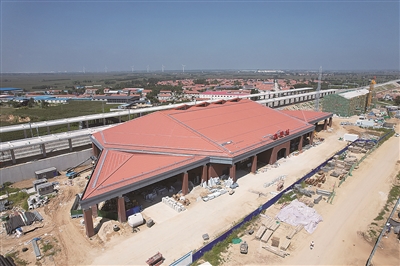 作为潍烟高铁的新建车站,目前灰埠站已基本成型,一座以红色为主基调、造型别致的新站房拔地而起。灰埠站站前广场部分建筑主体基本完成,计划今年5月底全部完工。