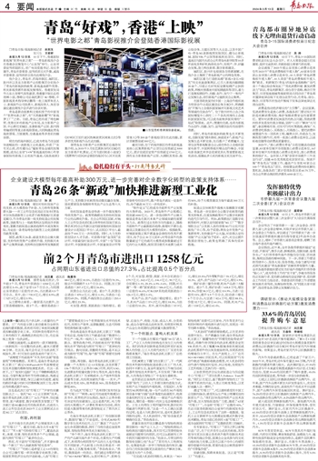 | 青岛日报社(集团)数字报纸(包括《青岛日报》、《青岛早报》、《青岛晚报》、《老年生活报》)的一切内容(包括但不限于文字、图片、PDF、图表、标志、标识、商标、版面设计、专栏目录与名称、内容分类标准以及为读者提供的任何信息)仅供青岛日报社(集团)读者阅读、学习研究使用,未经青岛日报社(集团)及相关权利人书面授权,任何单位及个人不得将青岛日报社(集团)数字报纸(包括《青岛日报》、《青岛早报》、《青岛晚报》、《老年生活报》)所登载、发布的内容用于商业性目的,包括但不限于转载、复制、发行、制作光盘、数据库、触摸展示等行为方式,或将之在非本站所属的服务器上作镜像。否则,青岛日报社(集团)将采取包括但不限于网上公示、向有关部门举报、诉讼等一切合法手段,追究侵权者的法律责任。 |