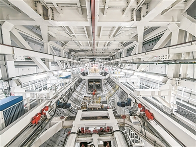 海天一色,碧波万顷。蔚蓝色的胶州湾海面之下,如今有三条如“钢铁巨龙”般的盾构机同时在海底潜行。截至目前,二隧南线主线隧道“海天号”盾构机已成功穿越首个风险源,掘进超200米,掘进至海底22米;中间服务隧道探路先锋“国信号”盾构机掘进1240米,掘进至海底52米;主线北线盾构段“深蓝号”盾构机也已始发。