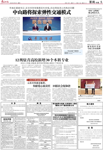 本报3月19日讯 19日,教育部公布2023年度普通高等学校本科专业备案和审批结果,共增设、调整专业点1719个。12所驻青高校共新增30个专业,涉及人工智能、新能源、数字经济、供应链管理等领域,涵盖21个特设专业、3个国家控制布点专业、1个特设国家控制布点专业。