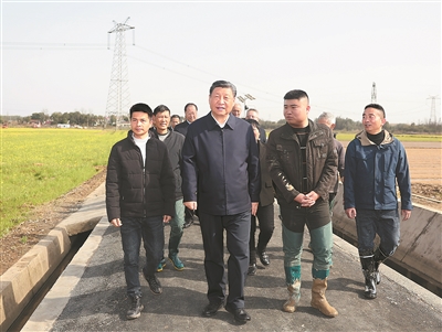 湖南是全国13个粮食主产省之一,水稻播种面积、总产量均居全国第一。当天下午,习近平来到常德市鼎城区谢家铺镇港中坪村,走进当地粮食生产万亩综合示范片区,察看秧苗培育和春耕备耕进展,听取高质量推进农业现代化情况介绍,并同种粮大户、农技人员、基层干部一笔一笔算投入产出账。习近平强调,我国有14亿多人口,粮食安全必须靠我们自己保证,中国人的饭碗应该主要装中国粮。要建设好高标准农田,推行适度规模经营,加强政策支持和示范引领,加大良种、良机、良法推广力度,在精耕细作上下功夫,进一步把粮食单产和品质提上去,让种粮也能够致富,进而吸引更多农户参与发展现代化大农业,真正把中国特色农业现代化之路走稳走扎实。