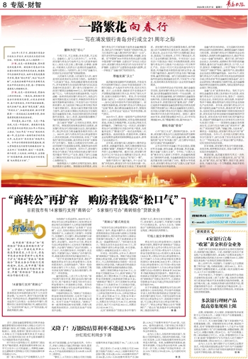 为持续扩大受益群体,2022年12月,青岛市住房公积金管理中心发布《青岛市商业性住房贷款转个人公积金贷款管理暂行办法》,我市“商转公”业务按下“启动键”。此后,支持办理该业务的合作银行范围持续扩大,从最初的工商银行、中国银行、交通银行、光大银行、青岛农商银行5家银行,后增加了建设银行、青岛银行、招商银行、农业银行。2023年12月底,青岛市住房公积金管理中心又发布关于新增浦发银行、兴业银行“商转公”试运行的通知。3月22日,本次通知发布后,中信银行、北京银行、华夏银行加入“商转公”合作银行队列,将惠及我市更多背负存量房贷的个人。