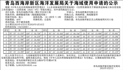 青岛西海岸新区海洋发展局关于海域使用申请的公示