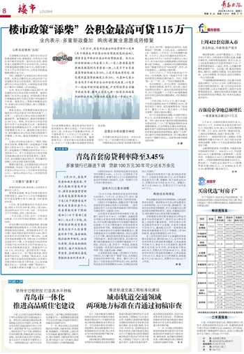 青岛调整首套房贷利率的同时,公积金政策再次放宽。根据青岛市住房公积金管理中心发布的消息,从3月29日起,提高购买二套房住房公积金贷款额度,多子女家庭住房公积金贷款支持政策拓宽至二套房,实施高品质住宅、绿色建筑住房公积金贷款支持政策。