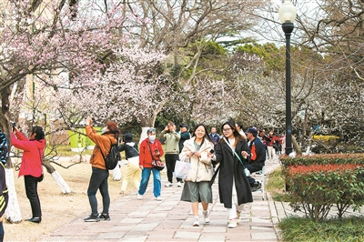 “春为一岁首,梅占百花魁。”眼下正是梅花盛开的时节,4月3日,在中山公园梅花园和梅花路,十余个品种的百余株梅花竞相绽放,吸引了众多市民和游客前来赏花。清明节假期将是中山公园梅花的最佳观赏期,园内的樱花也将陆续绽放。
