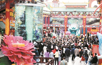 “清明假期的特色文旅场景,都是基于中华文化这一主线打造的。通过花仙子评选、花神巡游等一系列活动,带大家体验花朝之礼。为了满足年轻人需求,假日前后,我们全新升级了龙王招婿活动,新增加了现场说媒板块。4月3日晚和4月5日晚开展的两场活动中,有好几对年轻人彼此中意,愿意进一步了解,现场氛围非常热烈。”徐在泉介绍,假日期间,明月·山海间营业至晚11时,尤其是夜游时段,丰富的沉浸式演艺吸引了众多游客赶来。4月5日,青岛明月·山海间还迎来了接待客流总量达800万人次的新起点,足见市民游客对沉浸式文化体验项目的喜爱。