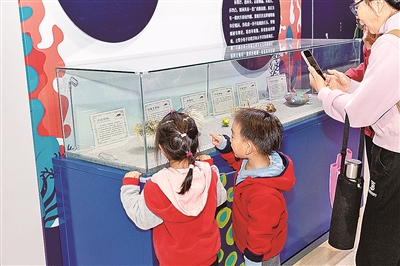 讲述海底“奇趣”故事的同时,展览还进一步围绕海洋生物的“珍”,呼吁人们对海洋生物、环境给予珍爱与保护。古人为什么把海贝作为交易用的货币?为什么“财”“货”等和“钱”有关的文字大都带有“贝”字旁?生活在自然条件优越的海洋大国,人们是否做到“取索有时,以期生生不息”?在科普墙的总结区,“守护海洋,珍爱地球”这八个大字也自然而然深入人心。