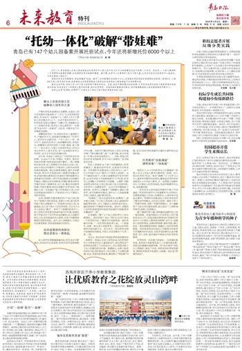 截至去年年底,青岛已有147个幼儿园备案开展托班试点。目前,各区市都在整合托幼资源,引导有空余学位的幼儿园按照相应标准进行改造,创设适宜0-3岁婴幼儿使用的环境、培训托育师资。西海岸新区教体局还提出,每所新建配套幼儿园设置单独的早教中心。