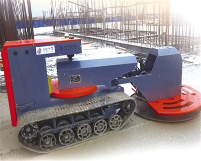 此外,在青岛建设工地内还有多个“机器人工友”的身影,比如喷涂机器人、整平机器人、抹平机器人、放样机器人等等。以抹平机器人为例,相对于人工,机器人的施工效率可提高30%以上,对混凝土地面的平整精准度误差可以控制在5毫米以内。
